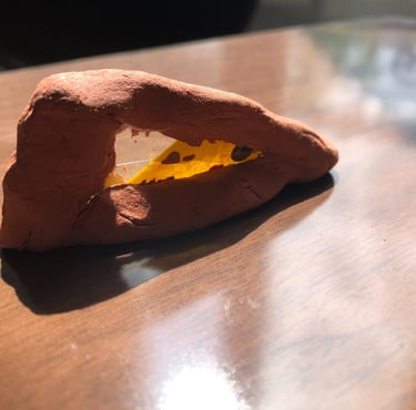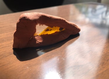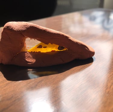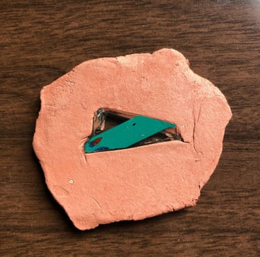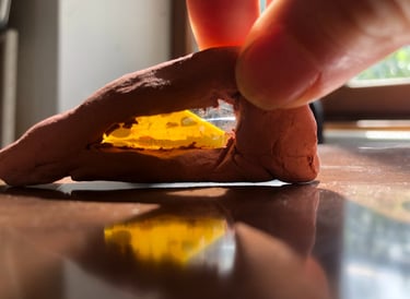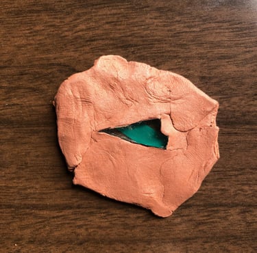 Modelage autour d'un éclat de verre peinturluré.(Désir d'un jeu avec les rayons du soleil).