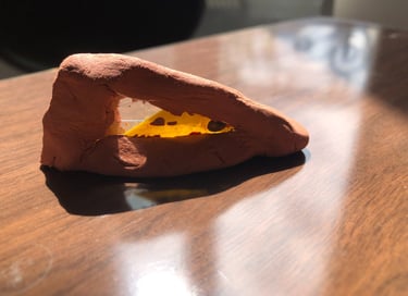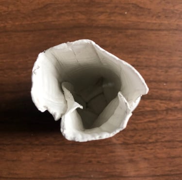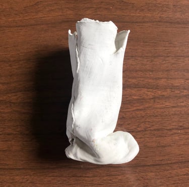 Modelage d'une fine couche de pate. Le bas s'est affaissé sous le poids ce qui à donné un effet plié.