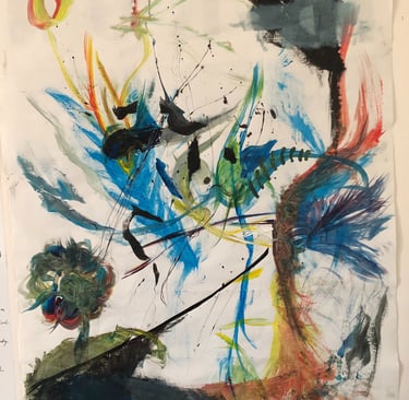 Jeu de couleur et de technique donc, cette peinture ne sera nommée, car souvent les noms orientent l'interprétation de l'ensemble.
